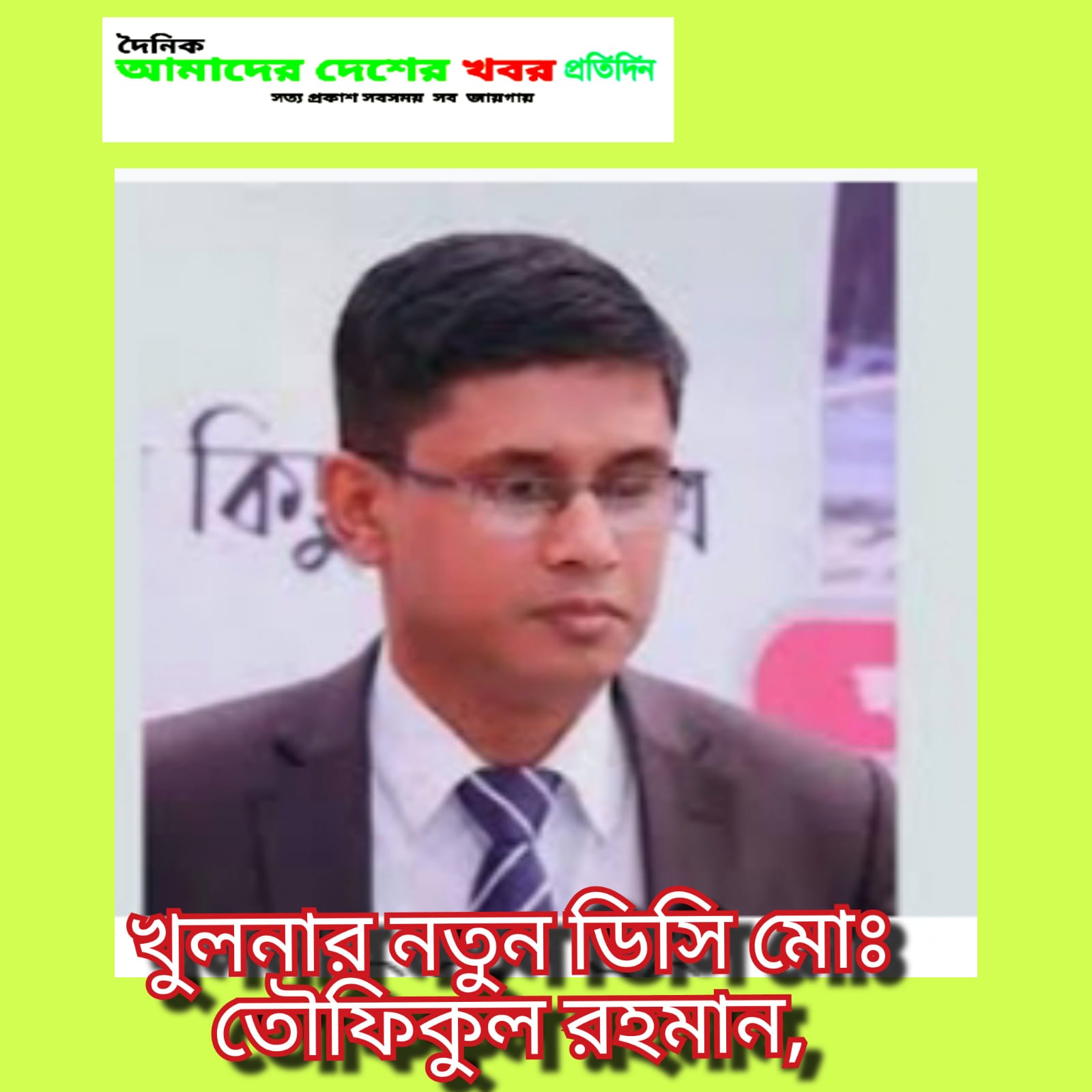 খুলনার নতুন ডিসি মোঃ তৌফিকুল রহমান, নিউজ-দৈনিক আমাদের দেশের খবর প্রতিদিন। শেখ শহিদুল ইসলাম মিঠু ব্যুরো প্রধান খুলনা, মোঃ তৌফিকুল রহমানকে খুলনার নতুন জেলা প্রশাসক (ডিসি) হিসেবে নিয়োগ দিয়েছে সরকার,