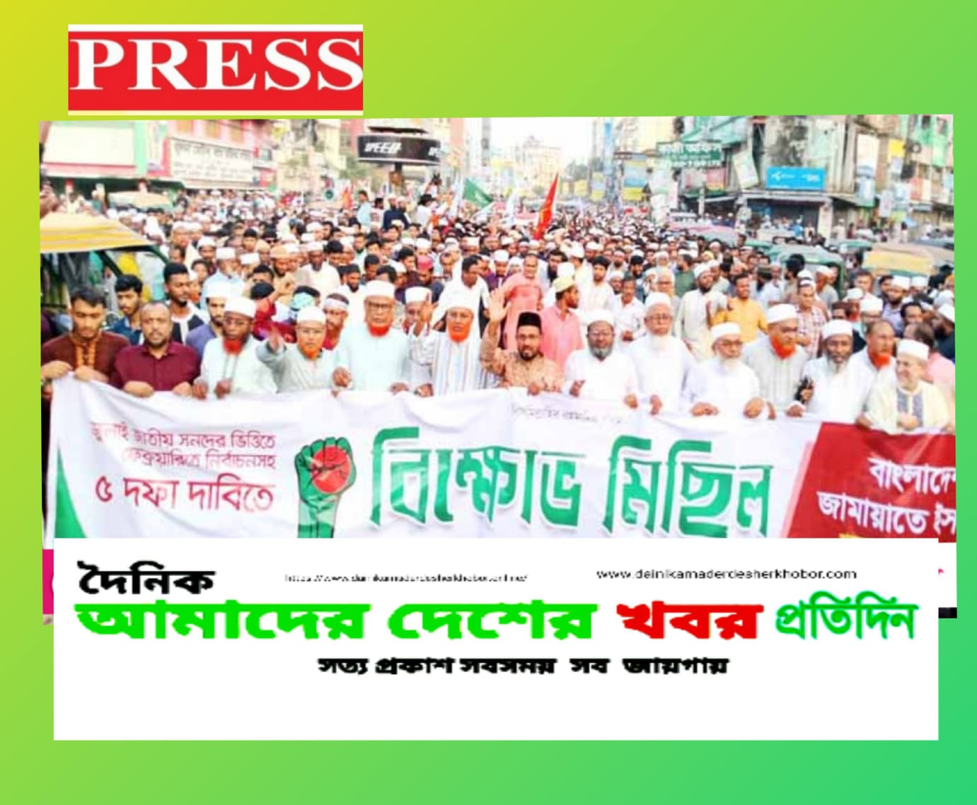 ৫ দফা দাবিতে খুলনায় জামায়াতের সমাবেশ ও বিক্ষোভ মিছিল, বিশেষ প্রতিনিধি:-মোঃ নাসির উদ্দীন গাজী। খুলনা, নিউজ :/দৈনিক আমাদের দেশের খবর প্রতিদিন। শনিবার, ২০ সেপ্টেম্বর, ২০২৫ /৫ দফা দাবিতে খুলনায় জামায়াতের