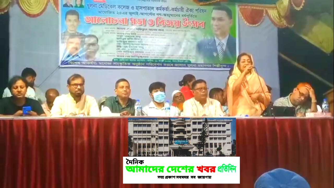 খুলনা মেডিকেল কলেজ ও হাসপাতাল কর্মকর্তা কর্মচারী ঐক্য পরিষদ আয়োজিত আলোচনা সভা ও বিজয় উৎসব পালন। নিউজ,দৈনিক আমাদের দেশের খবর প্রতিদিন,খুলনা থেকে বিশেষ প্রতিনিধি,মোঃ রফিকুল ইসলাম। আজ ২১ শেষ আগস্ট