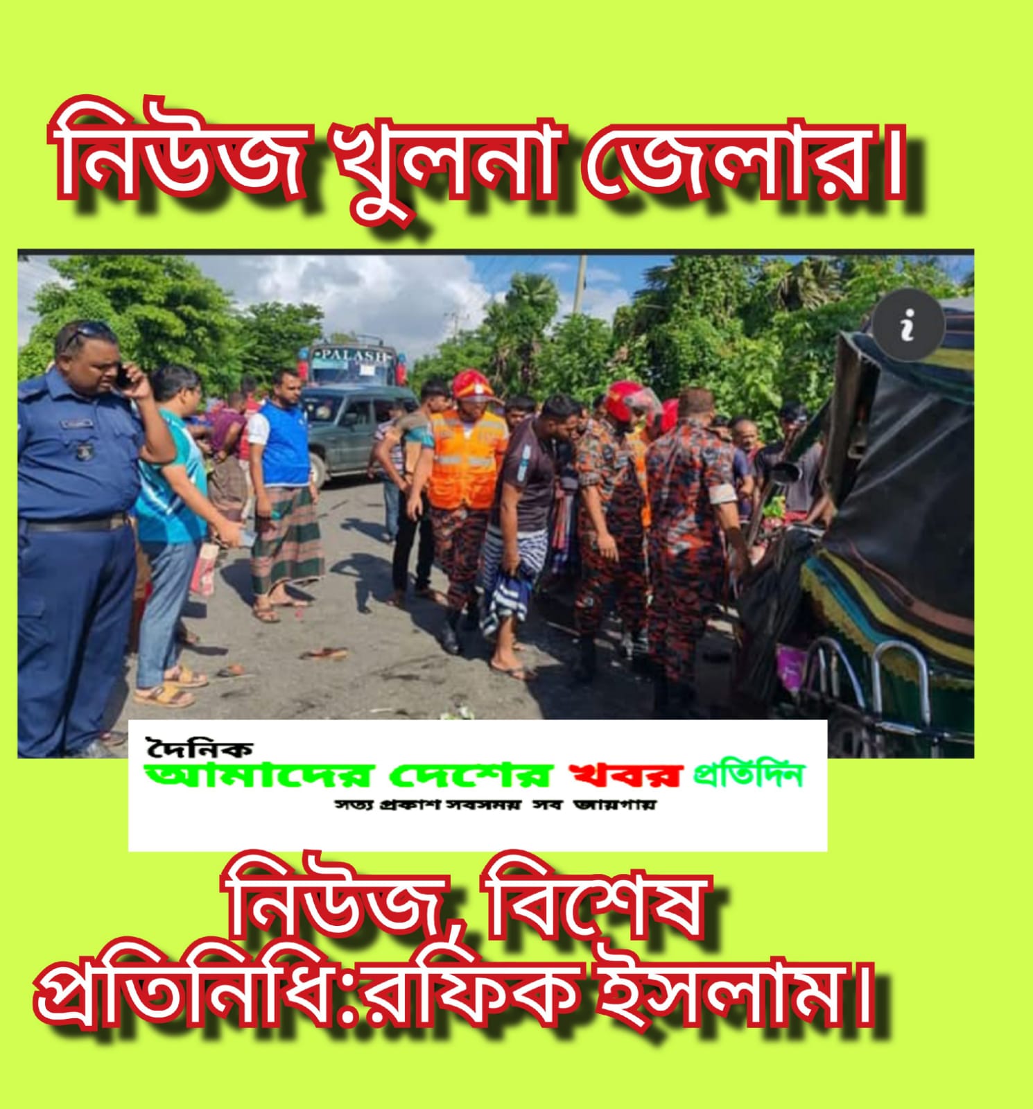 খুলনা ডুমুরিয়া পিকাআপ–ইজিবাইক সংঘর্ষে নিহত ৩, নিউজ:দৈনিক আমাদের দেশের খবর প্রতিদিন, এর বিশেষ প্রতিনিধি :খুলনা জেলা থেকে মোঃ রফিকুল ইসলাম। ডুমুরিয়ায় ইজিবাইক– পিকাআপ মুখোমুখি সংঘর্ষে ইজিবাইক চালকসহ ৩,জন নিহত ও